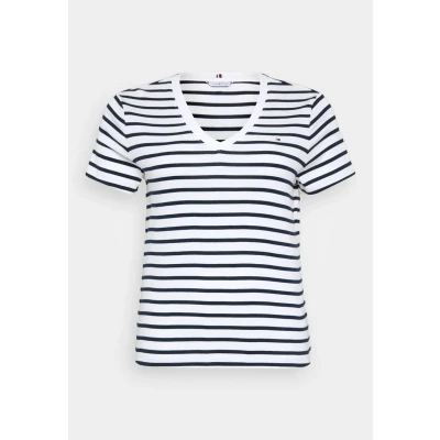 ZalandoTommy Hilfiger Curve Curve FLAG Embroidery Vneck SLIM Tshirt Basic Tshirt ecru/dark night navy Sale at Zalando UK | Outer fabric material: 100% cotton | Sale order at Zalando UK! Size: 22. Color: Ecru/dark night navy. Pattern: striped.