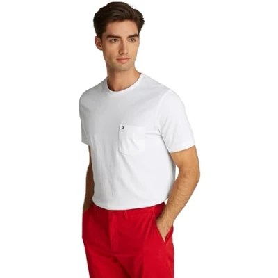 Tommy Hilfiger Essential Solid Pocket TEE Basic Tshirt, Men's, Size: XS, Ivory petal/sandalwood