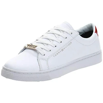 PREMIUM DESIGN: These elegant trainers make a statement thanks to their stylish design and high-quality leather. The Tommy Hilfiger logo on the side and metallic detail on the heel add a finishing touch to the shoes. OPTIMAL FIT: These original Tommy Hilfiger lace-up trainers don't just look great – they also fit your feet perfectly. FOR EVERY OCCASION: The stylish trainers go well with your everyday wear, but can also be paired with elegant attire for special occasions. The high-quality material ensures a comfortable feel all day long. PREMIUM MATERIAL: The shoe’s upper is made from 100% leather, the lining is cotton, and the sole is high-quality vulcanised natural rubber. PROVEN QUALITY: The designer brand has been captivating the global fashion industry with its high-quality and lightweight designs in a wide range of styles in its famous dark blue, white and red colours since 1985.