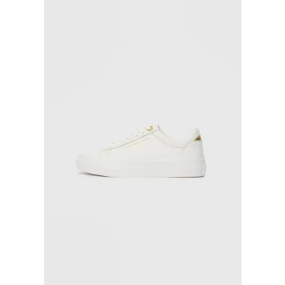 These coated leather lowtop trainers give a sophisticated finish to your ensembles, with statement platform outsoles and metallic logo detailing.Highlights• Leather mix upper• Polyester lining• Polyurethane, other fibres and thermoplastic rubber removable insock• Rubber outsole• Flat pebble grain finish• Platform sole• Tommy Hilfiger metallic logo embossed on side• Tommy Hilfiger top eyelets• Tommy Hilfiger brandingshape & fit• Lowtop• Laceup• Round toecomposition & care• 90% leather, 10% polyurethane Sale | Upper material: leather and imitation leather/Lining: 100% polyester/Sole: synthetics/Insole: textile | Sale order at Zalando UK! Size: 4. Color: White. Pattern: plain.