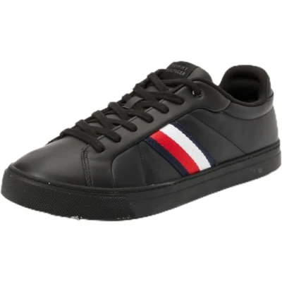 Tommy Hilfiger ICON Court Stripes Trainers, Men's, Size: 7, Black Leather