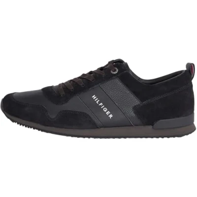 Tommy Hilfiger Iconic leather Suede MIX Runner Trainers, Men's, Size: 7, Black and imitation