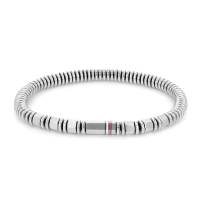 Beaded Bracelet for men by Tommy Hilfiger Material: Stainless steel Inner circumference: 18.5 cm Embellished with Enamel Tommy Hilfiger Flag Closure: Slip On