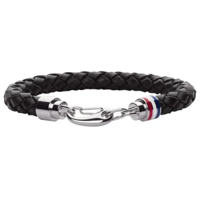 Braided leather bracelet for men by Tommy Hilfiger Material: Black leather with stainless steel closure Length: 22 cm Embellished with Enamel Tommy Hilfiger flag on the closure Closure: Hinged clip
