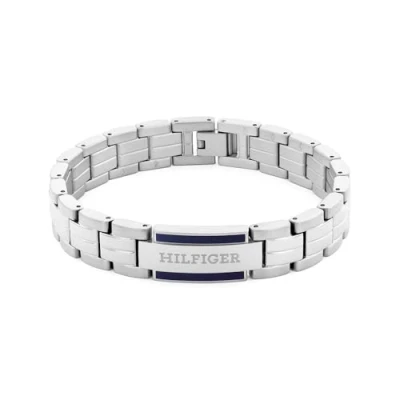 Metal Bracelet Inspired by Tommy Hilfiger Watches: Enhance your style with this sleek metal bracelet, reflecting the iconic design of Tommy Hilfiger watches. Perfect for adding a touch of elegance to any outfit. Stainless Steel Bracelet with Tommy Hilfiger Iconic Blue Enamel Detail: Crafted from high-quality stainless steel, this bracelet combines durability with refined style. The iconic blue enamel detail adds a distinctive and modern touch to the elegant design. Adjustable Fit for All Sizes: This bracelet by Tommy Hilfiger measures 190mm in length and features a design similar to a watch, allowing for easy resizing to ensure a perfect fit for any wrist. Signature Hilfiger Logo Engraving: Each piece in this collection features the iconic Hilfiger logo elegantly engraved, adding a touch of authenticity and brand distinction. This subtle yet sophisticated detail enhances the overall design, showcasing your appreciation for timeless style and premium craftsmanship. Secure Fold-Over Closure: Designed for durability and convenience, this bracelet features a secure fold-over closure that ensures a snug fit and easy fastening.