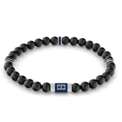 Beaded Bracelet for men by Tommy Hilfiger Stainless Steel with black wood beads Inner circumference: 18 cm Embellished with Etched Tommy Hilfiger Flag Closure: Slip On