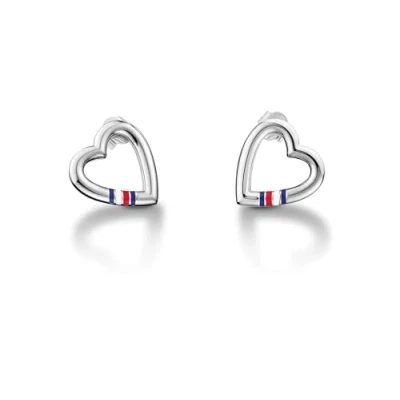 Heart stud earrings Material: Stainless steel Height: 15.2 mm Emamel Tommy Hilfiger stripe on the side of the earrings Closure: Butterfly clasp