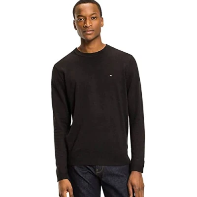 Tommy Hilfiger Jumper Men Mens Designer Black Sweater Men's Core Cotton Silk Crew Neck Flag Size M