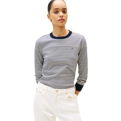 ICONIC & TIMELESS: This original Tommy Hilfiger jumper impresses with its elegant yet simple design. The classic round neckline makes this a timeless piece. OPTIMAL COMFORT: The flattering cut of this jumper will help you feel your best. This knitted top is neither too thick nor too thin, making it perfect for both the transitional seasons and winter. FOR EVERY OCCASION: This elegant piece can be worn so many ways and the embroidered Tommy Hilfiger flag adds a little something extra. Day or night, you can style this jumper for any event. MATERIAL & CARE: The jumper is made from 67% organic cotton and 33% polyamide. It is machine washable and suitable for the tumble dryer. PROVEN QUALITY: The designer brand has been captivating the global fashion industry with its high-quality and lightweight designs in a wide range of styles in its famous dark blue, white and red colours since 1985.