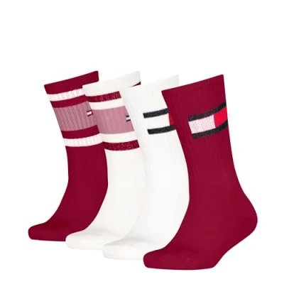 Tommy Hilfiger KIDS SOCK FLAG & Sport Stripe Unisex 4 PACK Socks for kids, Size: 6 8, Pink