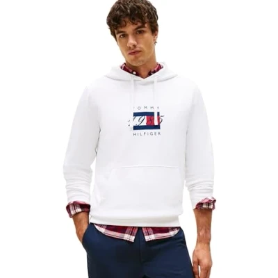 Tommy Hilfiger Linear FLAG Graphic Hoodie Unisex Sweatshirt, Size: 3XL, White