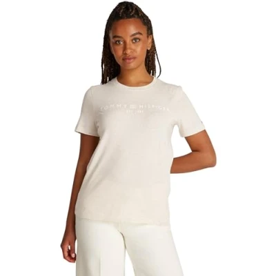 Tommy Hilfiger LOGO Print Tshirt, Women's, Size: XXS, Oatmilk heather