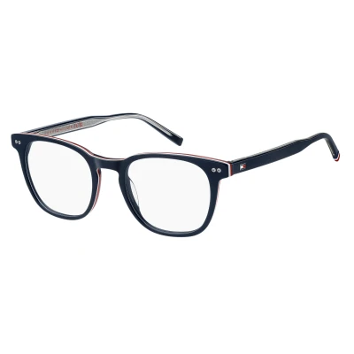 Eyeglasses Tommy Hilfiger Th 2187, with a square frame in acetate, offer a modern and decisive look. The blue color completes the structured design, perfect for those looking for a strong definition in their style. Recommended for round and oval faces, since they add corners and definition to the softer features. Ideal for Man.