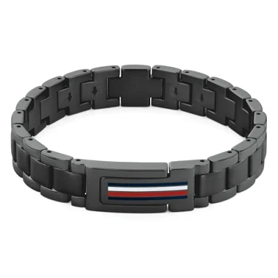 Tommy Hilfiger men's stainless steel bracelet, featuring the brand's iconic colors, combining classic Tommy Hilfiger style with a modern twist—more than just an accessory, it's a symbol of timeless elegance Crafted from high-quality stainless steel with a black ion plating, this bracelet offers a blend of durability and style, perfect for everyday wear Adjustable inner circumference of 190 mm, designed to fit comfortably and securely on your wrist Also available in silvier and blue, offering options to match different styles and preferences Secure magnetic closure, making it easy to put on and keeping the bracelet in place all day