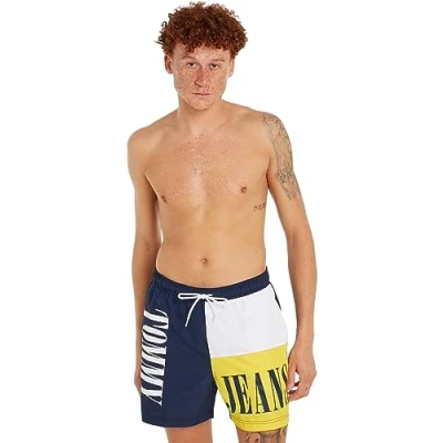 ICONIC & TIMELESS: The original Tommy Jeans swim trunks with a rear pocket are highly comfortable and fit well. The Tommy Jeans branding in front and the Tommy patch in the back add a finishing touch to the look. IDEAL FIT: These swim trunks have a simple design that suits any body shape. The elastic drawstring waistband ensures a comfortable yet secure fit. IDEAL FIT: These swim trunks have a simple design that suits any body shape. The elastic drawstring waistband ensures a comfortable yet secure fit. HIGH-QUALITY MATERIAL: This product is made of 100% recycled polyester. NEW TAKE ON STREETWEAR: Tommy Jeans is taking inspiration from hip hop icons of the 90s in order to bring popular classics from that era into the next generation. The focus is on quality and cool designs with plenty of denim.