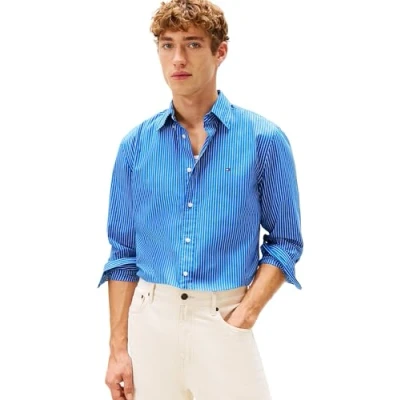 Tommy Hilfiger Men CORE Hairline POPLIN RF Shirt MW0MW41399 L/S Shirt, Blue, L