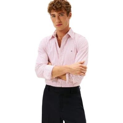 Tommy Hilfiger Men CORE Hairline POPLIN RF Shirt MW0MW41399 L/S Shirt, RED, M