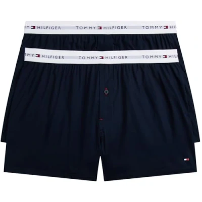 Tommy Hilfiger Men’s 2 Pack Woven Cotton Boxer Shorts, Blue (Desert Sky/Desert Sky), XS