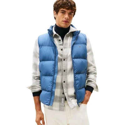 Tommy Hilfiger Men’s Down Gilet with Stand Collar, Blue (Aegean Sea), S