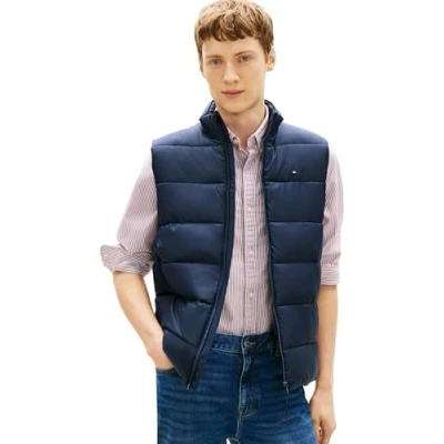 ICONIC & TIMELESS: This original Tommy Hilfiger gilet with two slanted welt pockets and a stand collar comes in a simple design. The warm, water repellent fabric and simple packaway design make this jacket particularly practical. OPTIMAL FIT: This simple transitional jacket comes in a timeless design that flatters every figure. What’s more, this sporty autumnal gilet would make the perfect gift for a person of any age. FOR EVERY OCCASION: Blending style and substance, this elegant gilet offers a supremely comfortable fit. Whether you're running errands at home or travelling, this jacket is the perfect pick. The understated Tommy Hilfiger branding on the side adds the final touch to the look. MATERIAL & CARE: The gilet is made from 100% recycled polyester. It is machine washable. PROVEN QUALITY: The designer brand has been captivating the global fashion industry with its high-quality and lightweight designs in a wide range of styles in its famous dark blue, white and red colours since 1985.