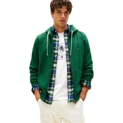 Tommy Hilfiger Men’s Essential Fleece Zip Through Hoodie with Pockets, Green (Ornamental Green), 3XL