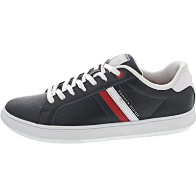 TOMMY HILFIGER Men's trainers lace-up appliqué logo details decorative stitching leather plain night blue Line: Tommy Hilfiger Size: 14 Pattern: plain Colour: night blue