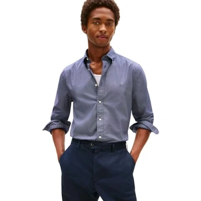 Tommy Hilfiger Men’s Flex Poplin Micro Regular Fit Shirt, Blue (Preppy Navy/Allover), XXL