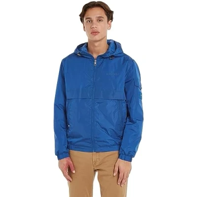 Tommy Hilfiger Men's Hooded Jacket for Transition Weather, Blue (Ultra Blue), L
