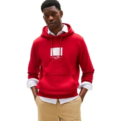 Tommy Hilfiger Men’s Ithaca Flag Cotton Hoodie, Multicolor (Medium Red), L