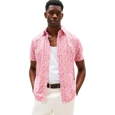 Tommy Hilfiger Men's Linen Blend Print S/S RF Shirt MW0MW41298 Shirt, Pink (Vintage Rosy/Allover), XL