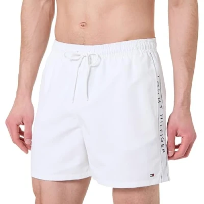 TOMMY HILFIGER Men’s Medium Drawstring Tape Swim Shorts, White (Th Optic White), XL