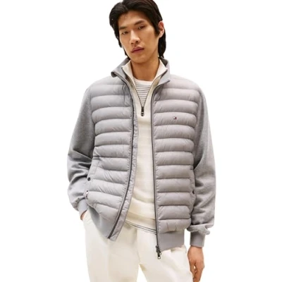 Tommy Hilfiger Men’s Mix Media Zip Sweatshirt with Stand Collar, Grey (Medium Heather), L