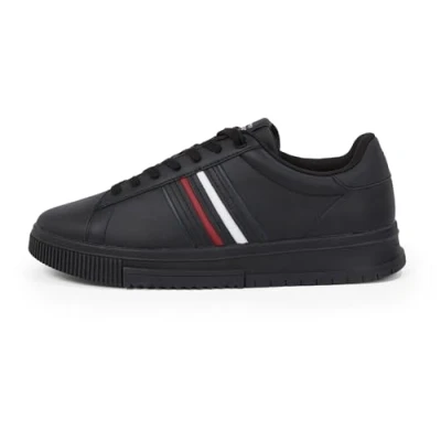 Tommy Hilfiger Men’s Modern Stripes Cupsole Trainers with Logo, Black (Black), 7