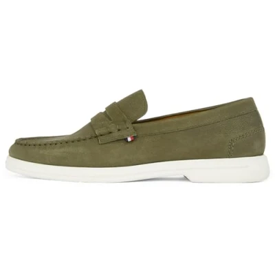 TOMMY HILFIGER Men’s Nubuck Leather Loafers, Green (Army Green), 7