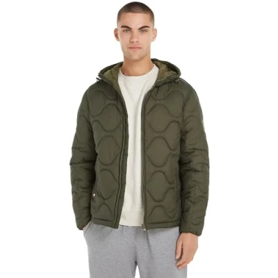 Tommy Hilfiger Men’s Quilted Jacket with Hood, Multicolor (Army Green), S