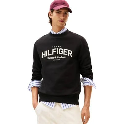Tommy Hilfiger Men’s Regular Fit Arch Crew Neck Sweatshirt, Black (Black), M