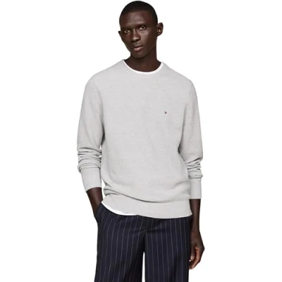 Tommy Hilfiger Men’s Regular Fit Essential Structure Crew Neck Jumper, Grey (Light Heather), L