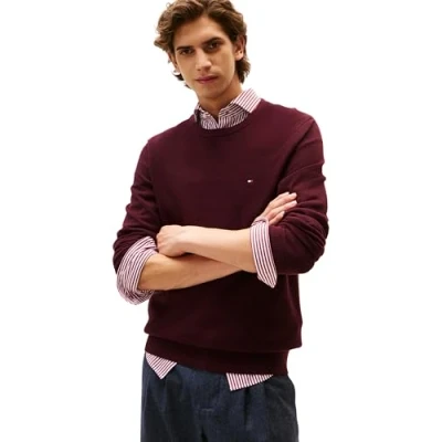 Tommy Hilfiger Men’s Regular Fit Essential Structure Crew Neck Jumper, Red (Deep Burgundy), M