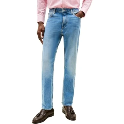 ICONIC & TIMELESS: These original Tommy Hilfiger jeans come in a casual design. The soft fabric and straight cut make this classic 5-pocket style particularly popular. OPTIMAL FIT: These straight fit jeans hug the body and create a fabulous silhouette. But you won't feel restricted, all thanks to the stretch fabric. PERFECT ALL-ROUNDER: The minimalist jeans are characterised by their exceptional comfort and are ideal for the office or everyday wear. The embroidered Tommy Hilfiger flag on the pocket is a real eye-catcher. MATERIAL & CARE: The jeans are made from 79% cotton, 20% recycled cotton and 1% elastane. They are machine washable and suitable for the tumble dryer. PROVEN QUALITY: The designer brand has been captivating the global fashion industry with its high-quality and lightweight designs in a wide range of styles in its famous dark blue, white and red colours since 1985.