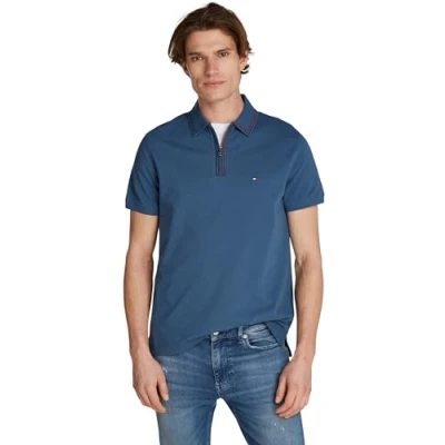 Tommy Hilfiger Men's Regular Fit Short Sleeve Polo Shirt, Blue (Aegean Sea), XS