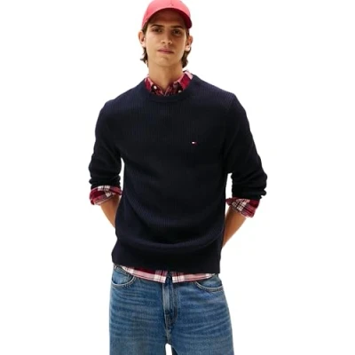 Tommy Hilfiger Men’s Ribbed Knit Crew Neck Jumper, Blue (Desert Sky), M