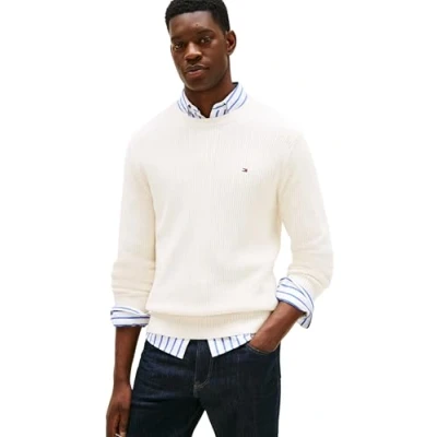 Tommy Hilfiger Men’s Ribbed Knit Crew Neck Jumper, Off White (Ivory Petal), M