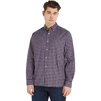 Tommy Hilfiger Men's Shirt Natural Soft Long Sleeve, Multicolor (Deep Indigo/Multi), XS