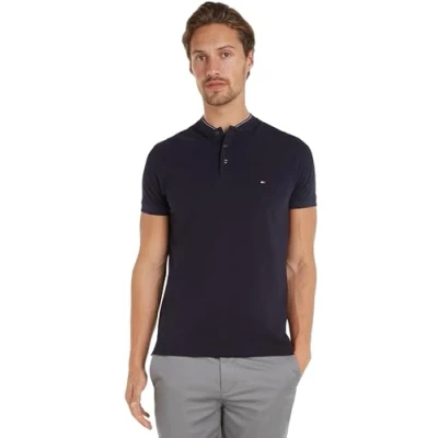 Tommy Hilfiger Men's Short Sleeve Baseball Slim Fit Polo Shirt, Blue (Desert Sky), S