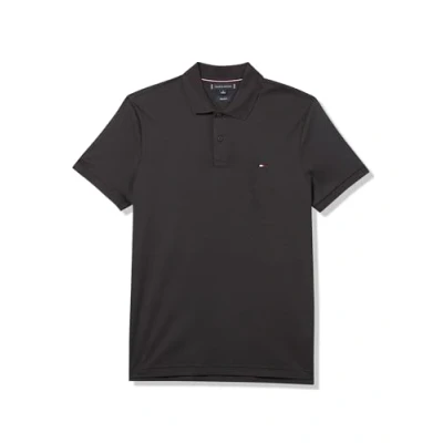 Tommy Hilfiger Men's Short Sleeve Casual Polo Shirts in Regular Fit with Liquid Cotton, Black, S
