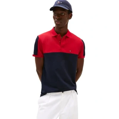 Tommy Hilfiger Men's Short Sleeve Casual Polo Shirts in Regular Fit with Stretch and Colorblock Designs, Desert Sky, XL