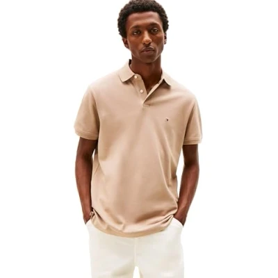 Tommy Hilfiger Men's Short Sleeve Polo Shirts in Classic Fit with Stretch and Organic Pique Cotton, Coastal Taupe, Medium