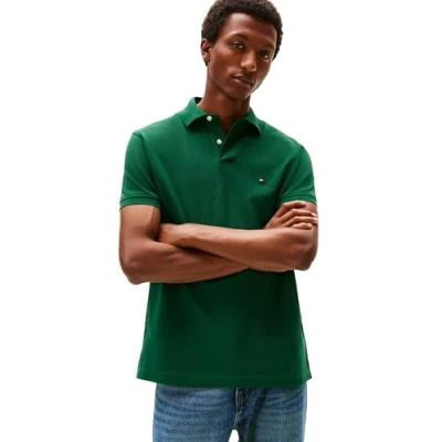 Tommy Hilfiger Men's Short Sleeve Polo Shirts in Classic Fit with Stretch and Organic Pique Cotton, Ornamental Green, Medium