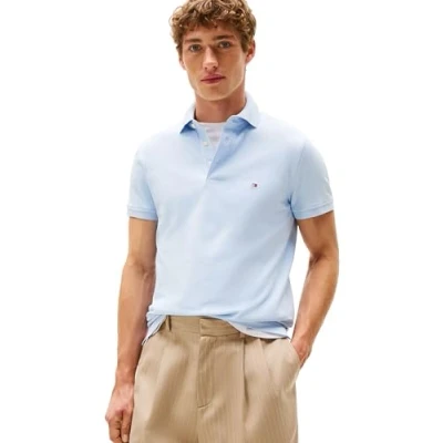 Tommy Hilfiger Men's Short Sleeve Polo Shirts in Slim Fit with Stretch and Organic Pique Cotton, Breezy Blue, S