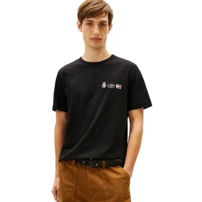 Tommy Hilfiger Men’s Short Sleeve Round Neck Small Crest Outline T Shirt, Black (Black), M